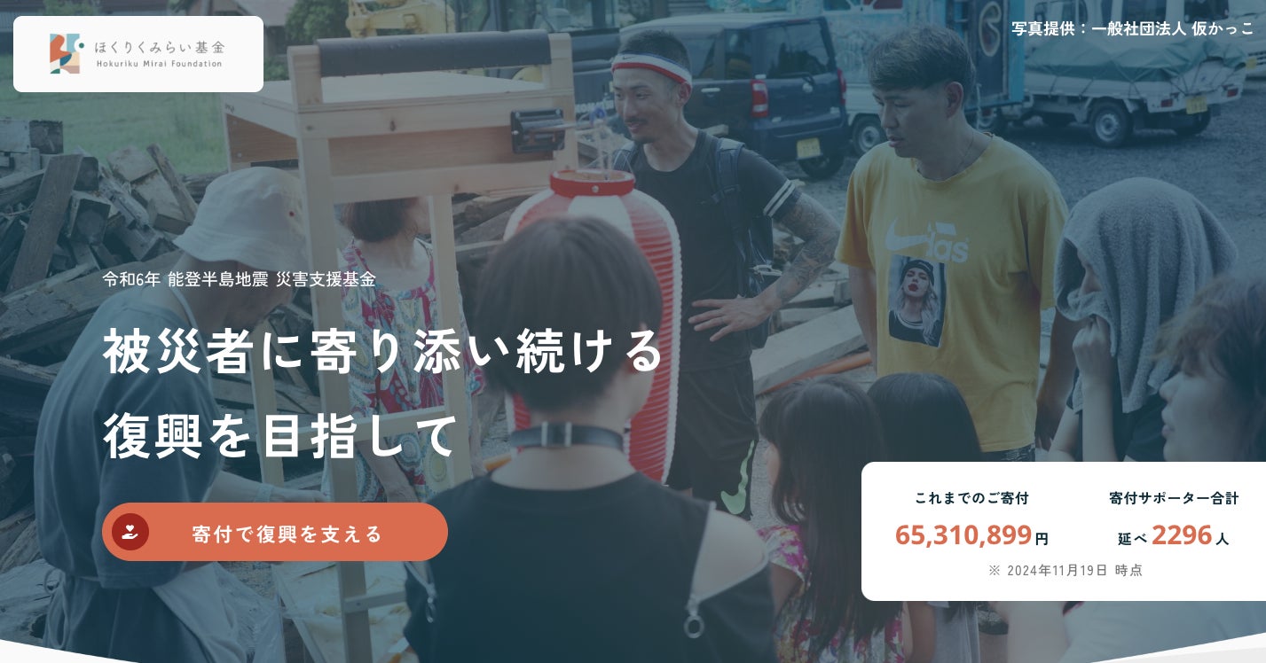 公益財団法人ほくりくみらい基金(所在地:石川県金沢市、代表理事:永井三岐子)は、リタワークス株式会社(本社:大阪市西区、代表取締役・共同代表 塚本 誠・中川 雄太)の支援を受け、「令和6年能登半島地震災害支援基金」寄付募集ページをリニューアルしました。