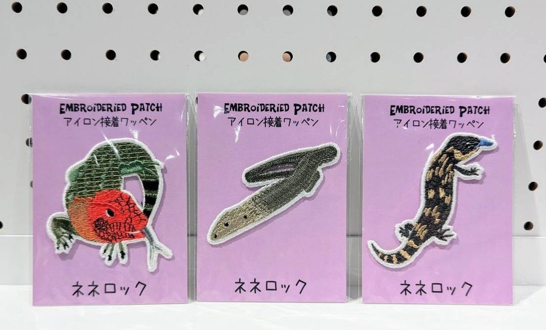 AOAO SAPPOROオリジナル商品として、「爬虫類と生命のワンダー展」に展示するトカゲの仲間の刺繍ワッペンを販売します。