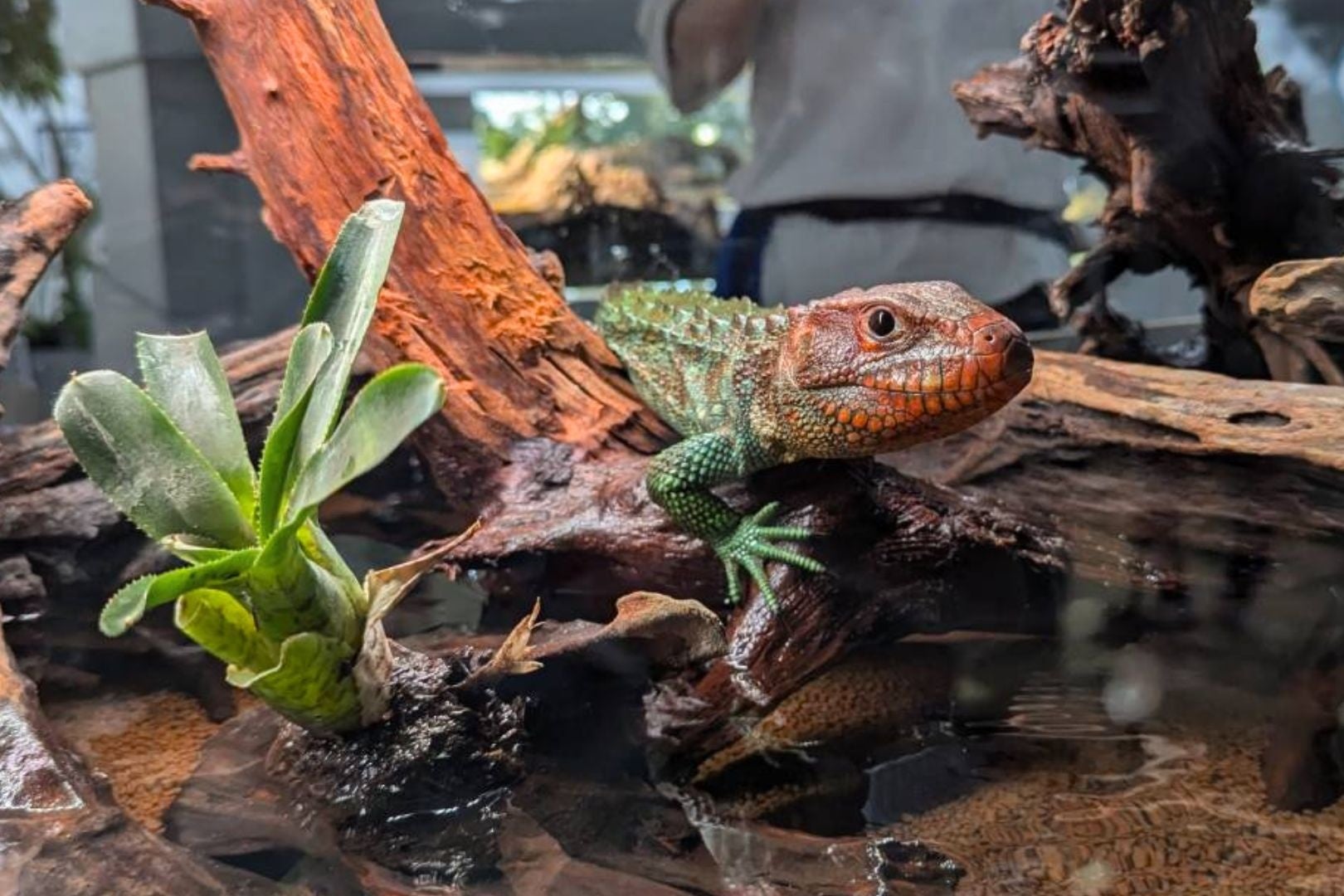 6F「GREEN ROOM」に新設された7つの展示水槽を初公開したほか、“赤い顔と緑の体”をもつ全長約60cmの大型爬虫類「ガイアナカイマントカゲ」を搬入する様子と、展示予定の“トカゲ”の仲間6種類を初公開しました。