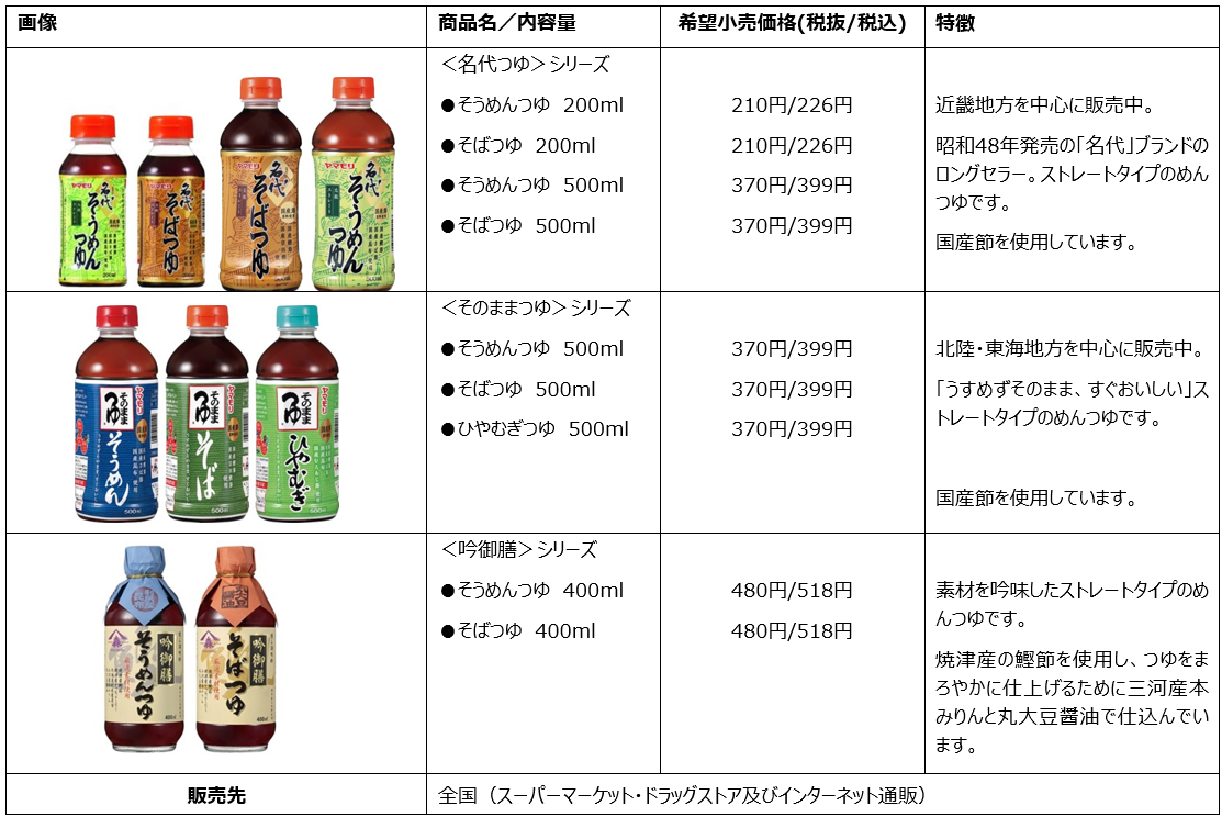以来、ストレートつゆの強みである”最後の1口までおいしい”だしが効いた味わいが支持され、ヤマモリのストレートつゆは近畿地方(「名代つゆ」シリーズ)、東海・北陸地方(「そのままつゆ」シリーズ)で夏の風物詩として長きにわたりご愛顧いただいています。