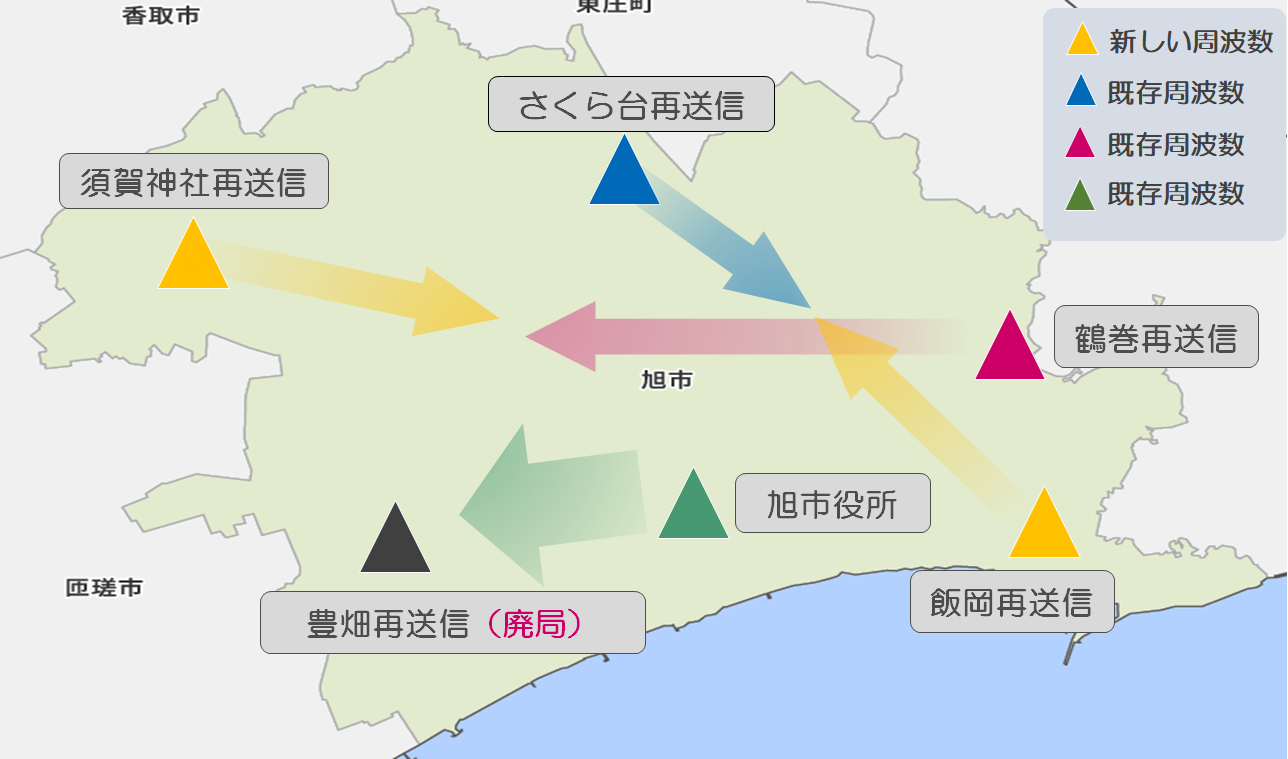 電波の周波数を3波から4波に増波することで、これまで電波がぶつかり合って受信が不安定になっていた地域の電波不感を解消しました。