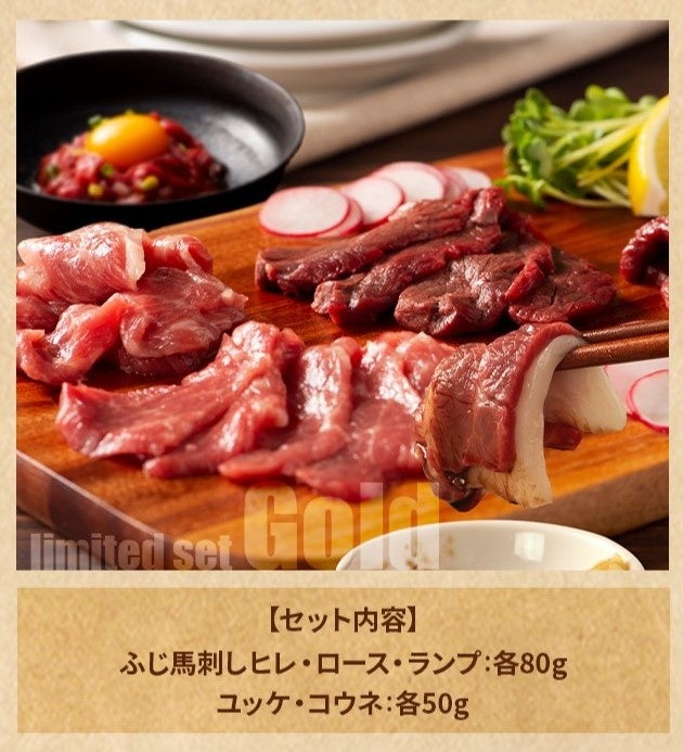 ふじ馬刺し 赤身3点セット ¥7,344円(税込)