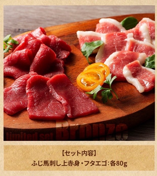定番商品ふじ馬刺し「上赤身」は赤身本来の旨味が堪能できる商品。脂と赤身が三層になっておりコリコリとした食感と見た目も華やかなフタエゴは贈り物としてもとても人気な商品がセットになった母の日限定セット