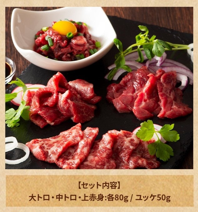 100%使用した「ユッケ」、美容に嬉しい成分のコラーゲンが豊富な「タテガミ(コウネ)」が入った母の日限定セット