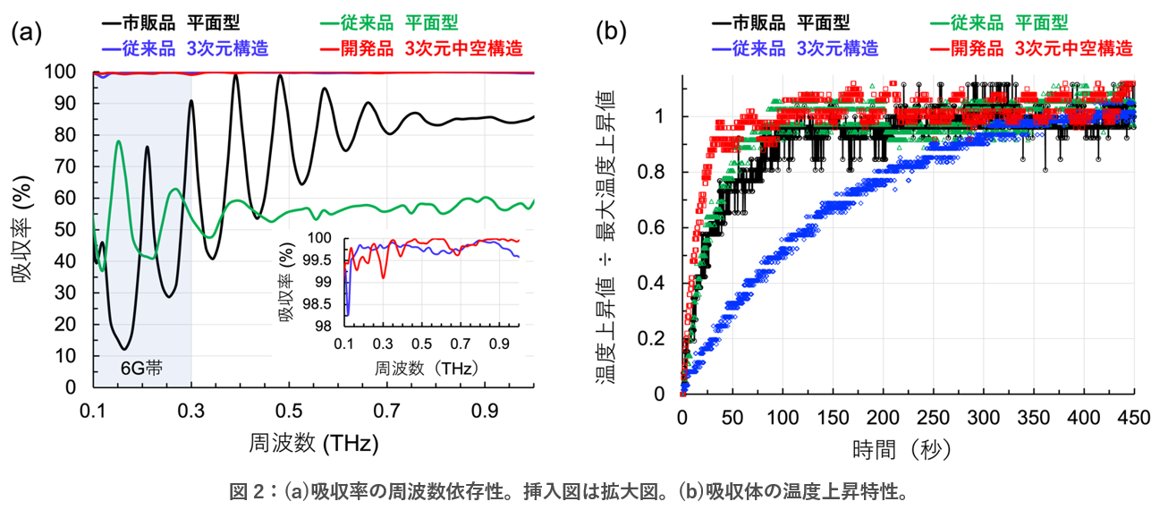 ・ 3Dプリンターと成膜技術で製造した3次元熱伝導経路を持つ中空構造で高いテラヘルツ波吸収率と高速熱応答性を両立