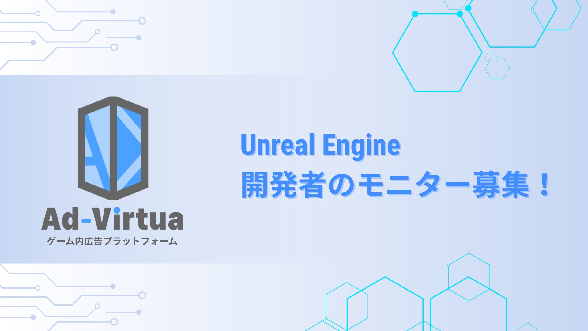 メタバース・ゲーム内広告配信プラットフォーム「Ad-Virtua」の開発・運用を行うアドバーチャ株式会社(所在地:東京都北区、代表取締役:水野 征太朗)は、「Unreal Engine対応版 Ad-Virtua(アドバーチャ)」のベータ版を開発中です。ベータ版公開に先立ち、モニターに協力いただける開発者・開発チームを募集します。