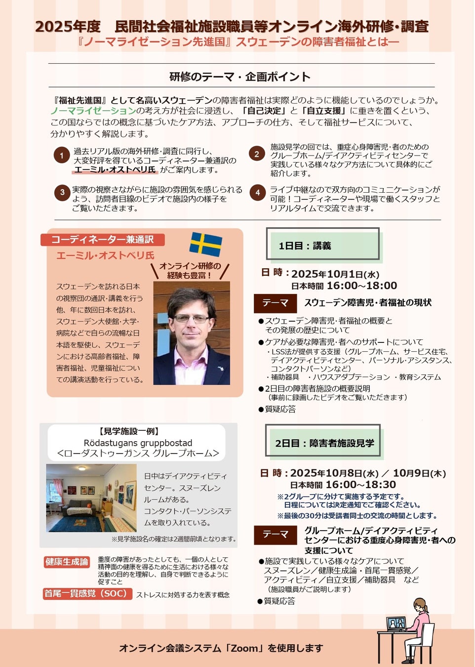 2025年度 民間社会福祉施設職員等オンライン海外研修・調査のご案内