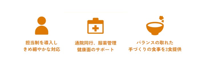 ・ご利用者様の健康状態を把握した職員が主治医と連携し、その時々の状態に合わせた健康サポートを行います