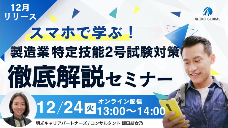 【12月24日(火)13時~】スマホで学ぶ!製造業:特定技能2号試験対策 徹底解説セミナー