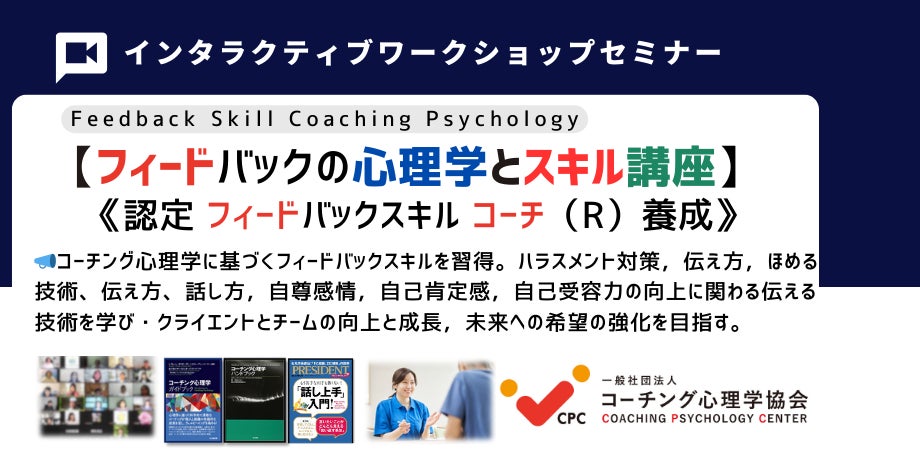 ◆【ハラスメント対策,ほめる技術,伝え方の技術】 フィードバックスキルコーチング基本講座開催 フィードバックの心理学とスキルとは?オンライン・ワークショップイベント