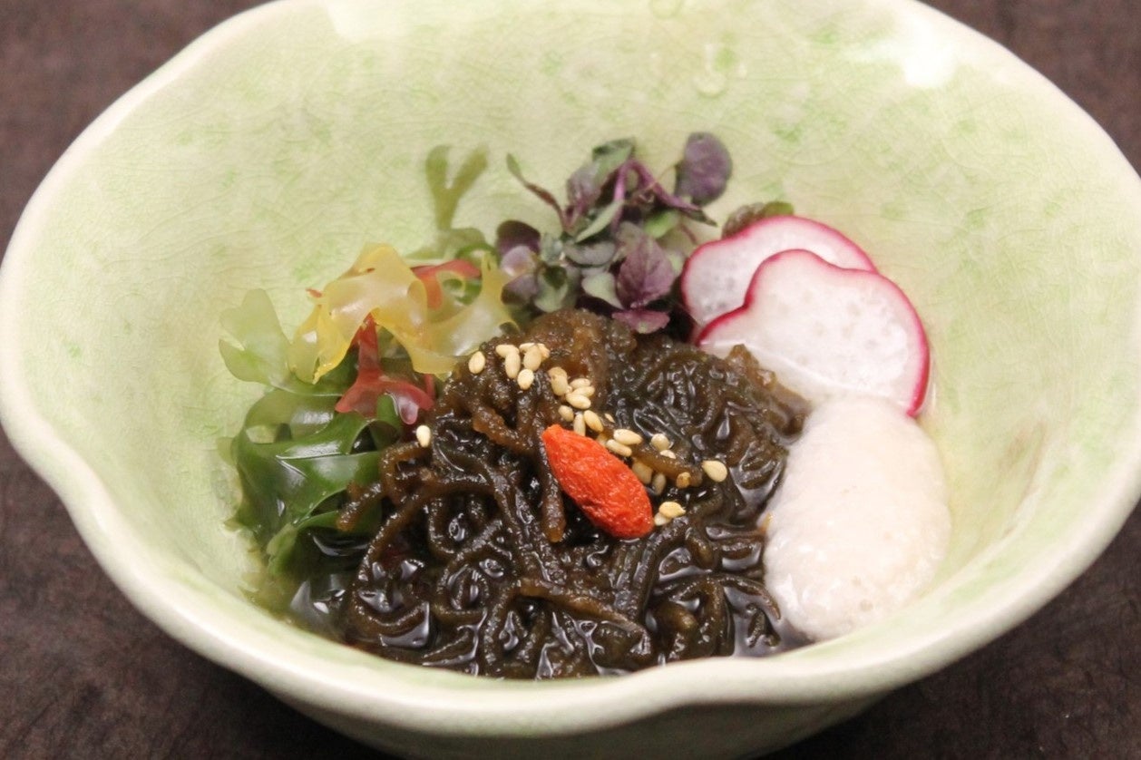 沖縄県産もずくをベトナムで塩抜きし、20gポーションにしてバラ凍結しました。形や重量がそろっており、軽量の手間が省ける簡易商品です。三杯酢と和えて小鉢として提供したり、冷凍のまま天ぷら粉をつけて、もずく天ぷらとしてご提供するのがおすすめです。