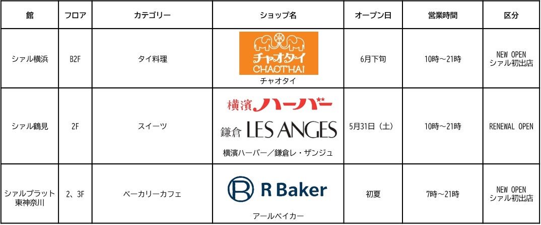 株式会社JR横浜湘南シティクリエイト(本社:神奈川県平塚市代官町/代表取締役社長:田村修)が運営するシァル横浜、シァル鶴見、シァルプラット東神奈川の各館では、2025年5月~6月にかけ、合計3ショップがNEW OPEN & RENEWAL OPENします。