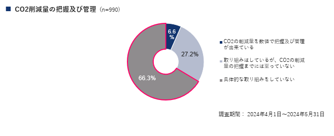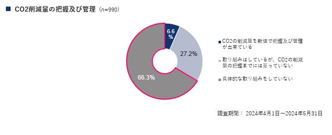 「CO2の削減量を数値で把握及び管理ができている」は6.6%となり、「具体的な取り組みをしていない」は66.3%となりました。
