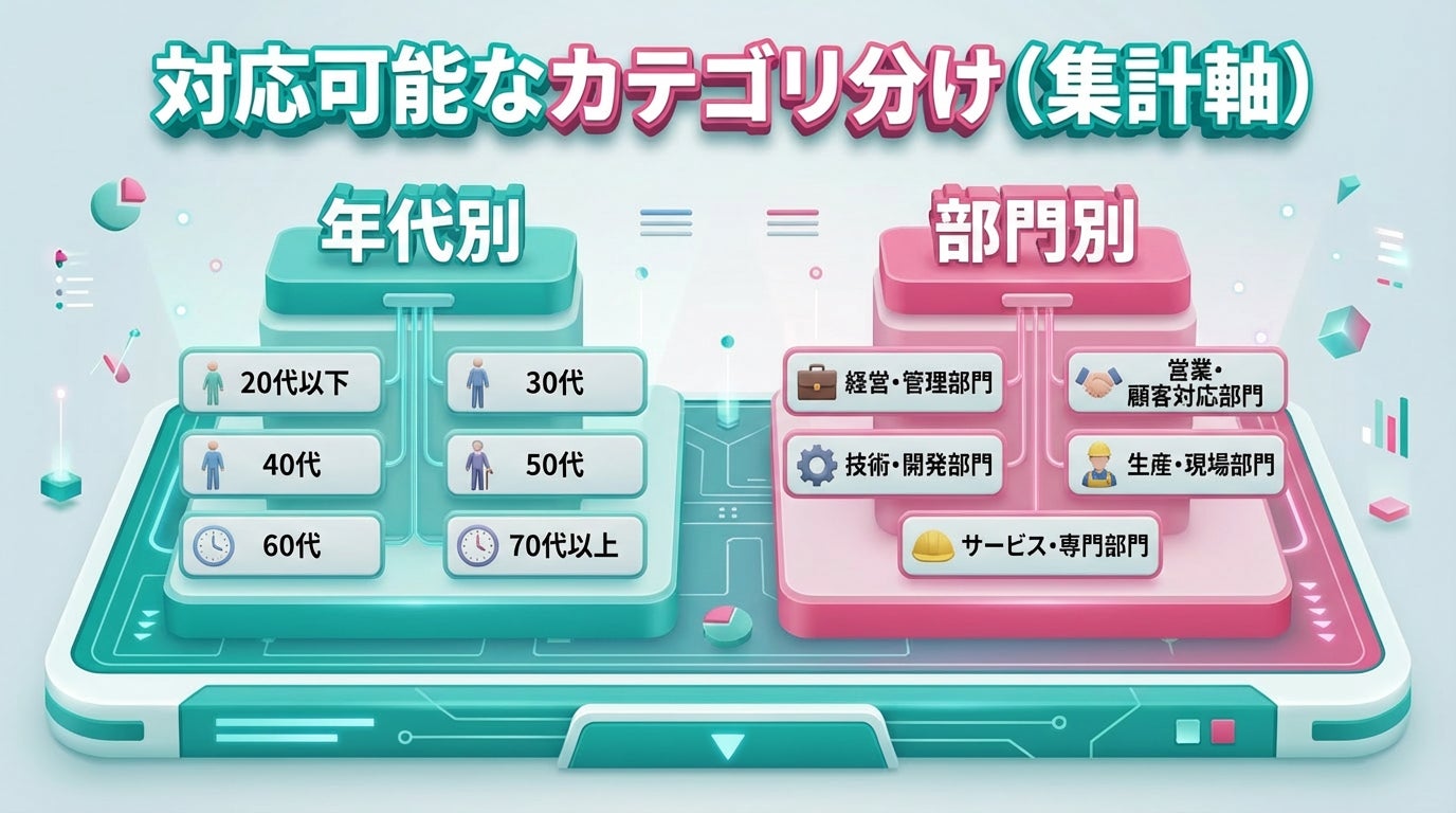 ・全社平均だけでは見えない、課題の偏り(特定の年代・職種など)を把握できる