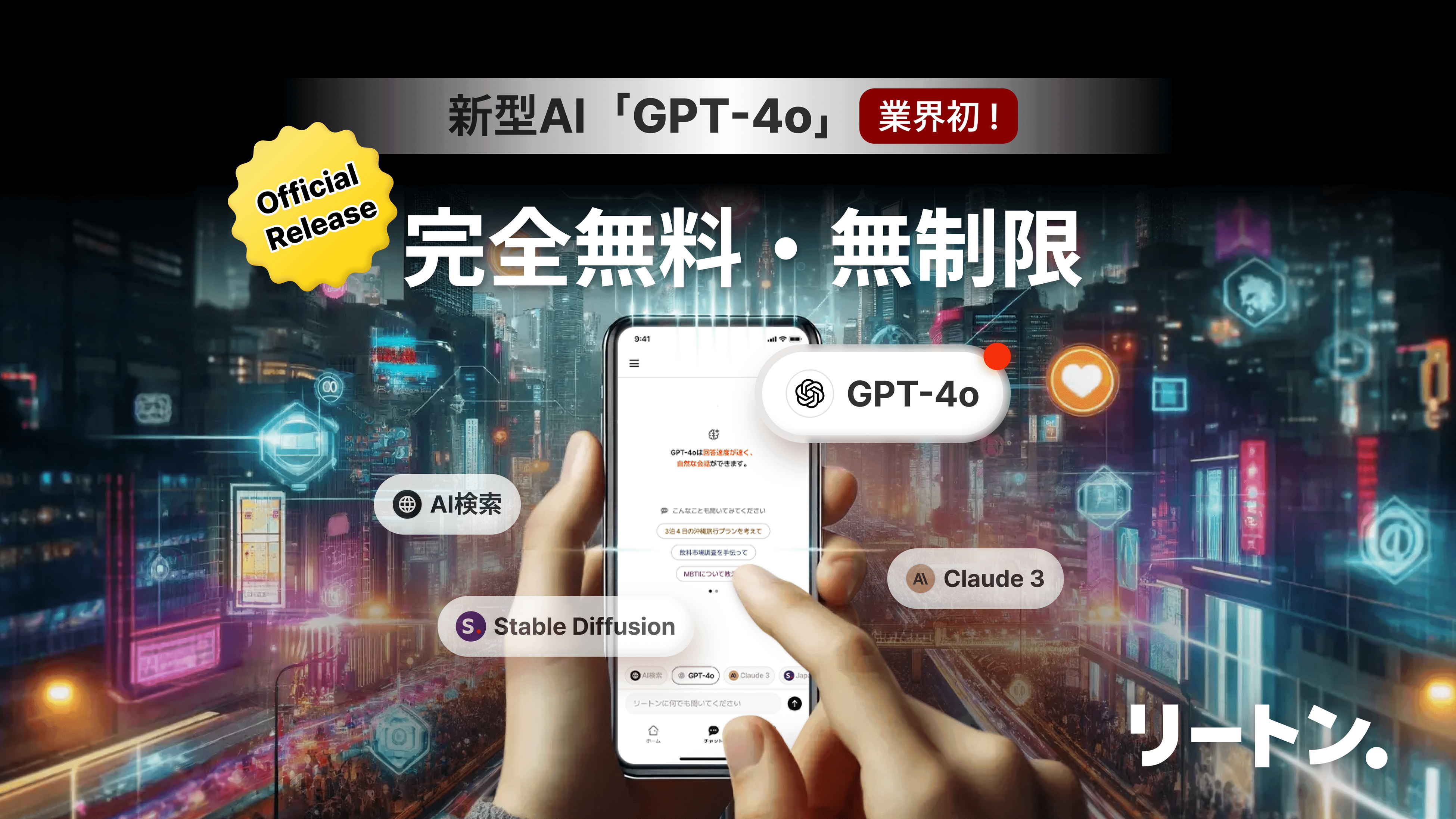 ぜひ、最速かつ更に使いやすくなった「GPT-4o」を「リートン」で体感してください!