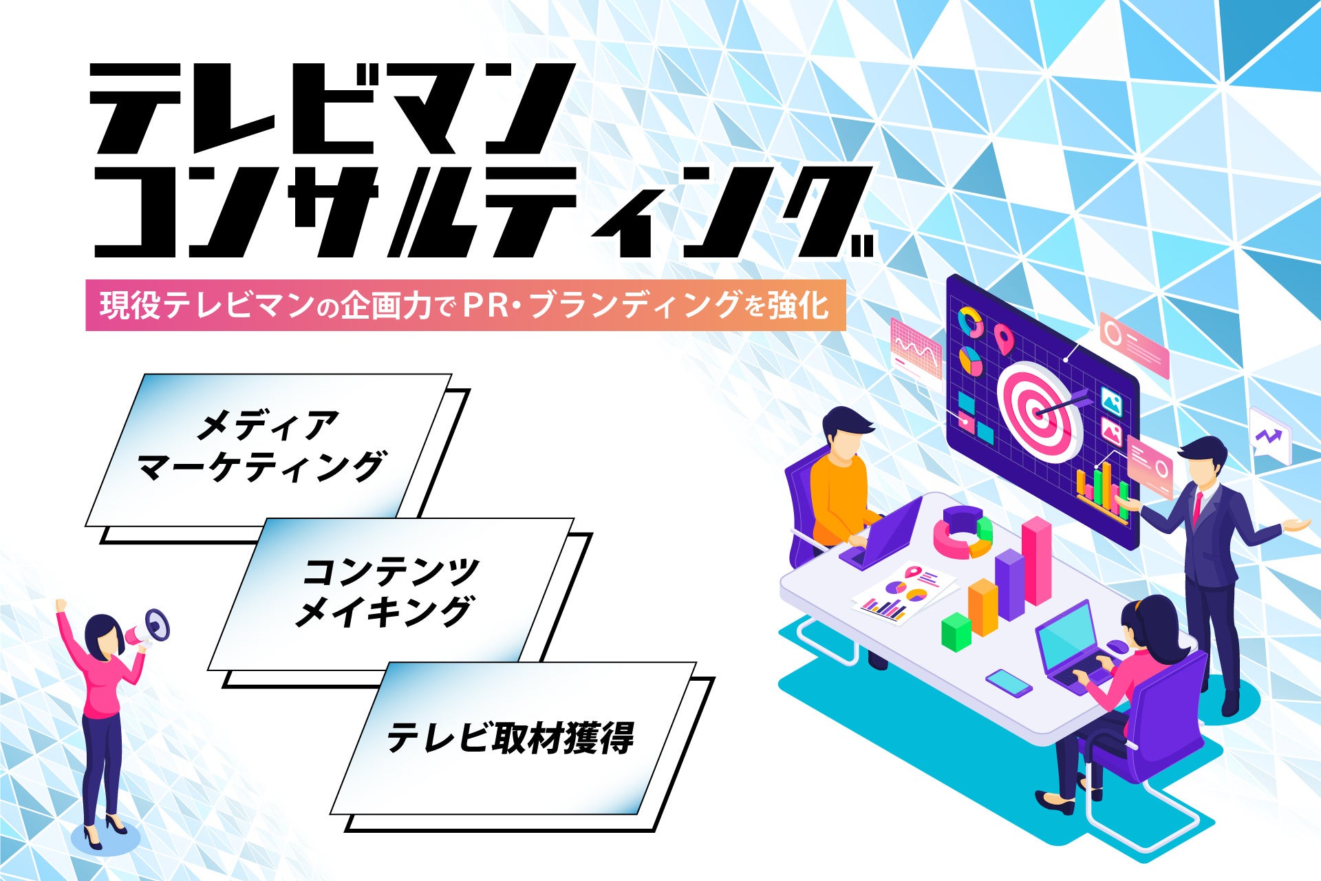 こうした背景から、弊社ではこの度、テレビマンが企業のPRコンサルティングを行い、そして地上波テレビ番組への露出をサポートする、本サービスをリリースいたしました。
