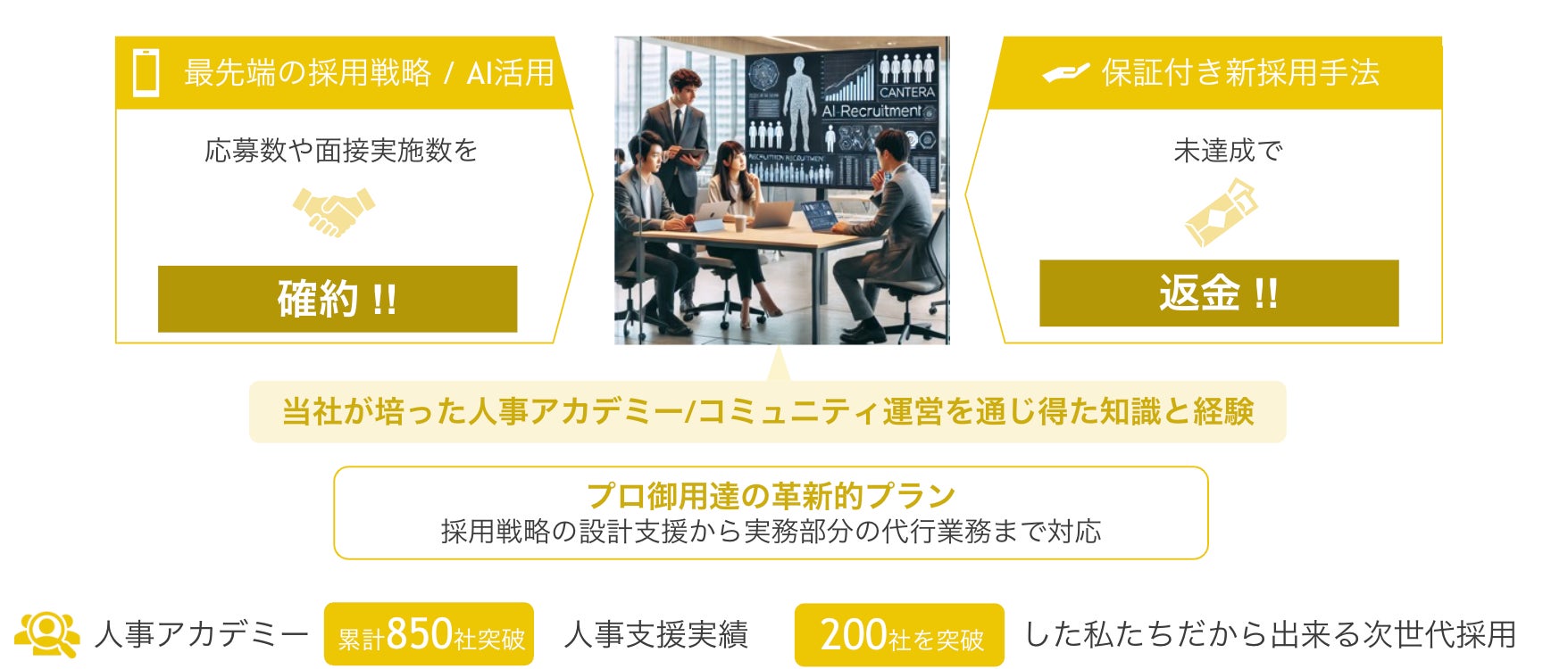 採用難の時代にあって、事業成長に見合った採用人数の確保は、企業成功と社員エンゲージメントを高めるために非常に重要です。市場の変化に応じて適切な人材を確保することは、組織のモチベーションと生産性の向上に直結し、競争力を維持する上で欠かせない戦略となります。このように採用は、持続的な成長と事業の拡大を支える重要な基盤創りです。今回の新サービスは、ここ数年カンテラの人事プラットフォームを通じた多くの人事ノウハウと実績を活かし、挑戦した領域でした。当社にとっても大きなチャレンジです。私たちのミッション、「働くすべての人に待ち遠しい明日を。」の提供に向けて、一層努力して参ります。