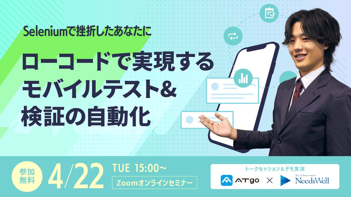 「ローコードで実現するモバイルテスト&検証の自動化 ATgo×株式会社ニーズウェル」ウェビナー開催のお知らせ