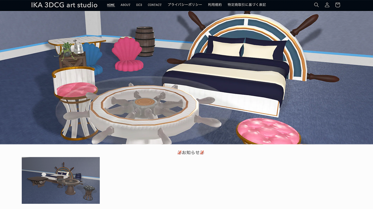 メタバース・VR等で活躍する3DCGクリエイター イカめし氏が「DC3」を採用、自身の制作した3Dモデルを唯一無二の「モノ」として販売するECサイト「IKA 3DCG art Studio」をオープン