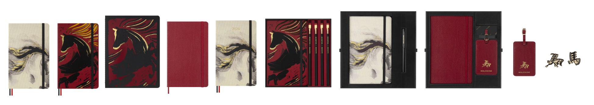 午年限定版コレクションは、モレスキンストアおよびオンラインストア(moleskine.co.jp)にて発売し、全国取り扱い店舗では順次展開します。縁起の良い午年デザインのリミテッドエディションをぜひお楽しみください。