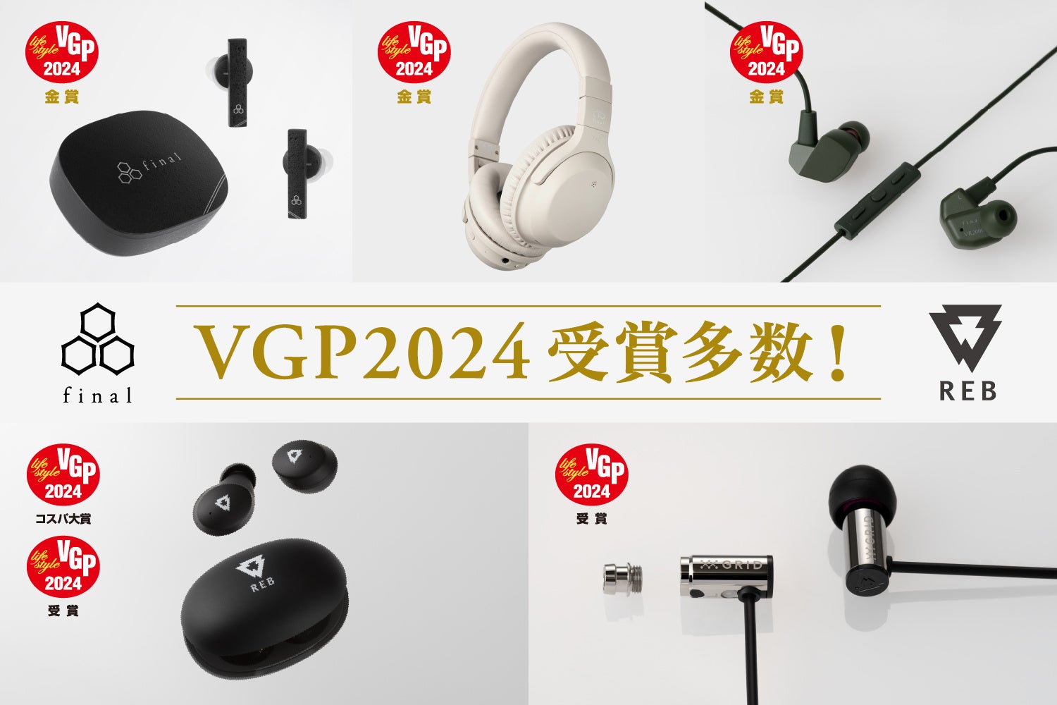 finalブランドからは、フラッグシップ完全ワイヤレスイヤホン「ZE8000 MK2」(Bluetooth完全ワイヤレスイヤホン・3.5万円以上4万円未満)、ノイズキャンセリングヘッドホン「UX2000」(Bluetoothオーバーヘッド型ヘッドホン・1万円以上2万円未満)、ゲーミングイヤホン「VR2000 for Gaming」(ゲーミングイヤホン)がそれぞれ部門賞で【金賞】を受賞いたしました。