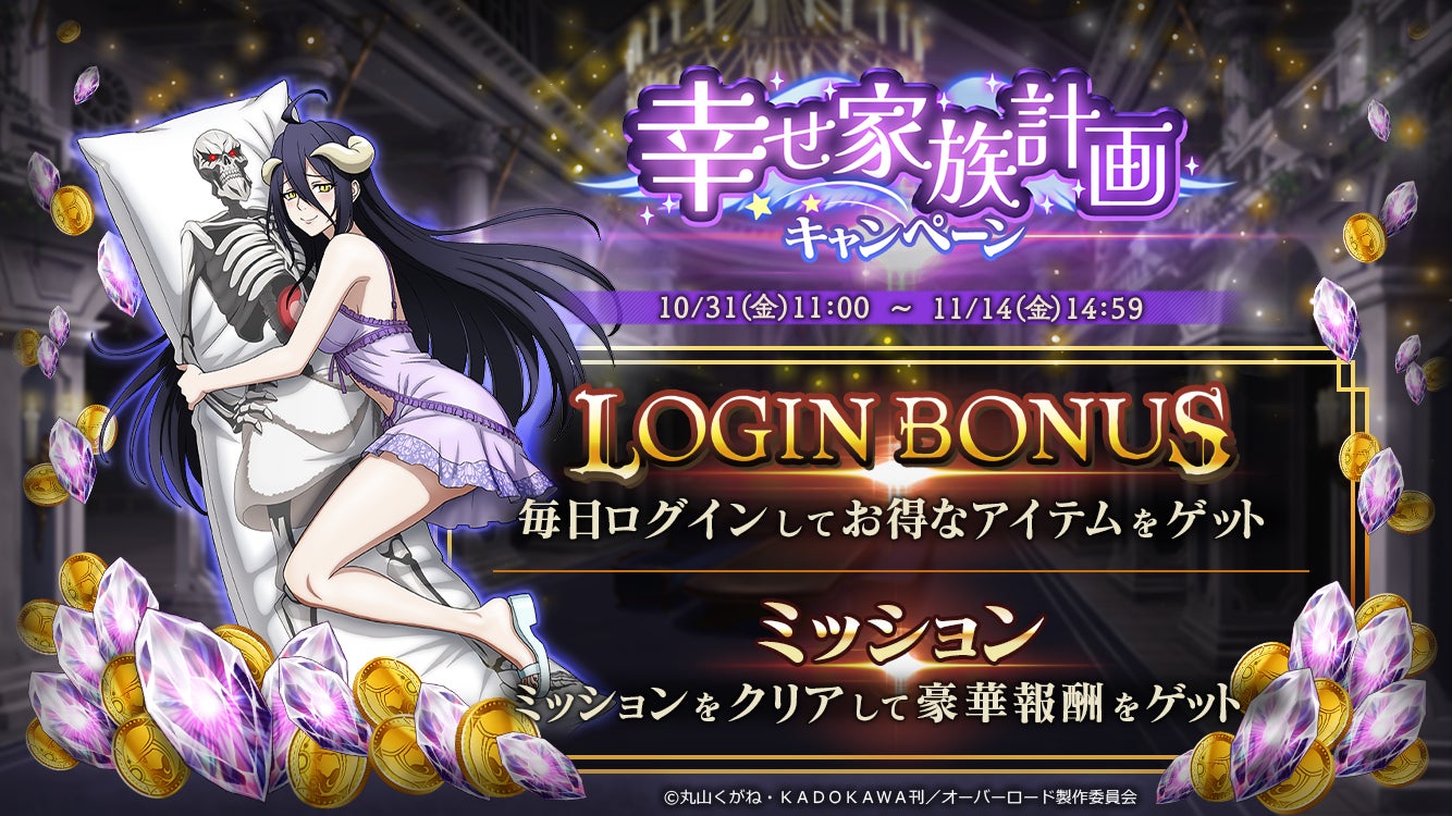 10/31よりイベント『『幸せ家族計画』』を実施!召喚では『★5【賢妻賢母】アルベド』が登場します!