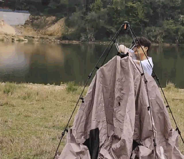 弓を引くような動作で簡単にテントが広がり、フックをフレームに固定して完成します。お一人での組立てはもちろん可能ですが、家族みんなで協力してテントを組立てるのはアウトドアのいい思い出となります。