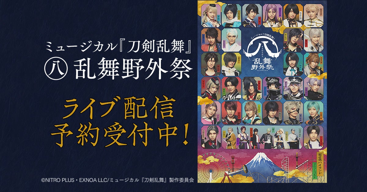 「ミュージカル『刀剣乱舞』 ㊇ 乱舞野外祭」は、ミュージカル『刀剣乱舞』が8周年を迎えることを記念して開催される、大型ライブ公演としては初となる野外での“祭”。28振りの刀剣男士と、2名の歴史上人物が全公演に出演するほか、日替わりで6振りの刀剣男士が出演する。