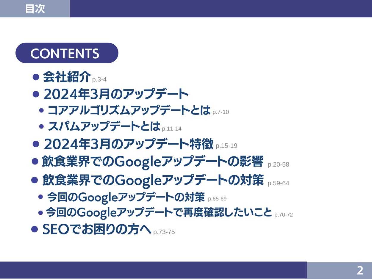今回のGoogleアップデート分析レポートのトピックは下記の通りです。