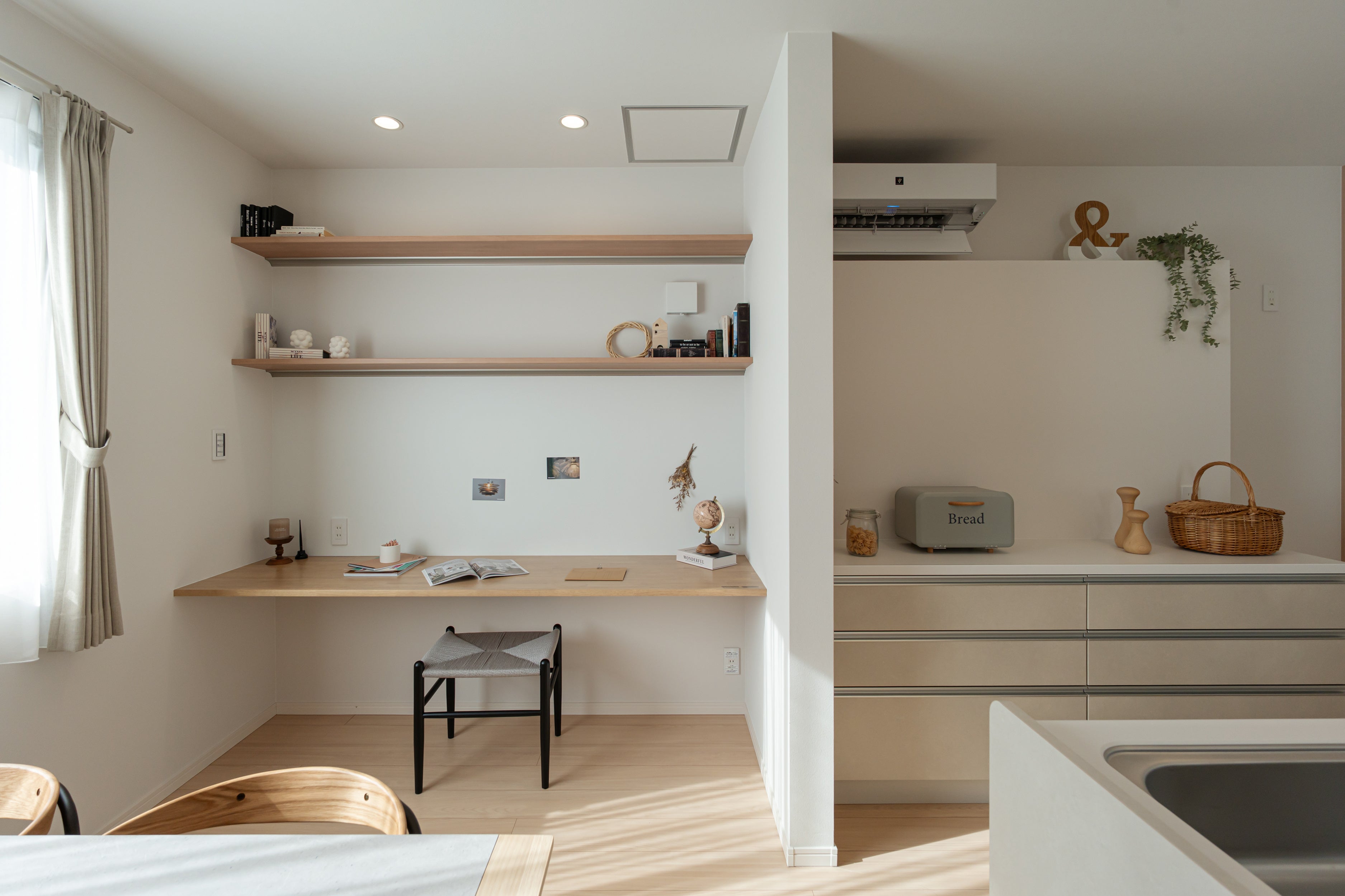 キッチンに立てばリビング・ダイニングはもちろん、スタディースペースまで見渡せる一体感のある間取りを採用。