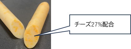 当社主力製品「チーズinかまぼこ」のチーズ配合量が15%に対し27%を配合。