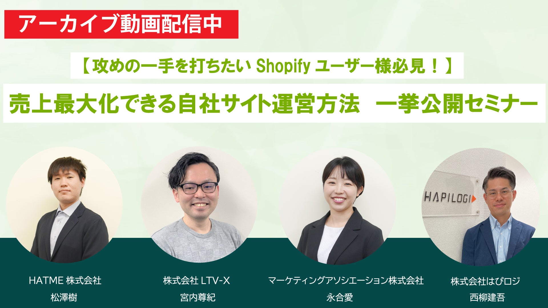 【アーカイブ動画公開のお知らせ】Shopifyユーザー様必見!売上最大化できる自社サイト運営方法一挙公開セミナー