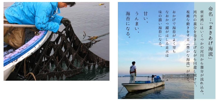 丸良水産は江戸時代から続く漁師家系。長年続いてきた歴史も、海の環境変化を背景に、二代目である良治さんの代で畳むことも考えていたとのこと。そこで、娘さんの明加里さんが昔から尊敬していた父の働く姿と「海苔を世界に広めたい!」という強い想いから、勤めていた大手企業を辞め、家業を継ぐことを決心!三代目となるご主人の光さんと共に歴史を引き継ぎます。丸良さんは海苔問屋ではなく、漁師(生産者)であるため、海苔の生産にとことんこだわり抜きます干出という育苗工程では、海苔本来の味を強くする様に心がけて育て、加工工程でも海苔そのものの旨みを消さない様な手の掛け方を施します。小海老もピンセットで取っていたり、海苔の葉一枚だって残さず洗います。丁寧に、コツコツと、時に大胆に、手掛けていきます。