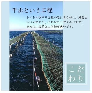 「コツコツと、いいものを。」をモットーに日々心を込めて生産しています。地形に恵まれ、栄養豊富であり、海苔細胞を強くする早い潮を持つ海「走水」そこで生まれた旨味の強い海苔を安心安全に、こだわりを持って、お届けします。自分がおいしいと思えるか。思えるものを作ると、おいしいって言って貰えた時に、すごく嬉しい。子供に食べさせたいかどうかも生産する上では大きなチェックポイントです。横須賀名物の走水海苔をこの機会にご賞味ください。