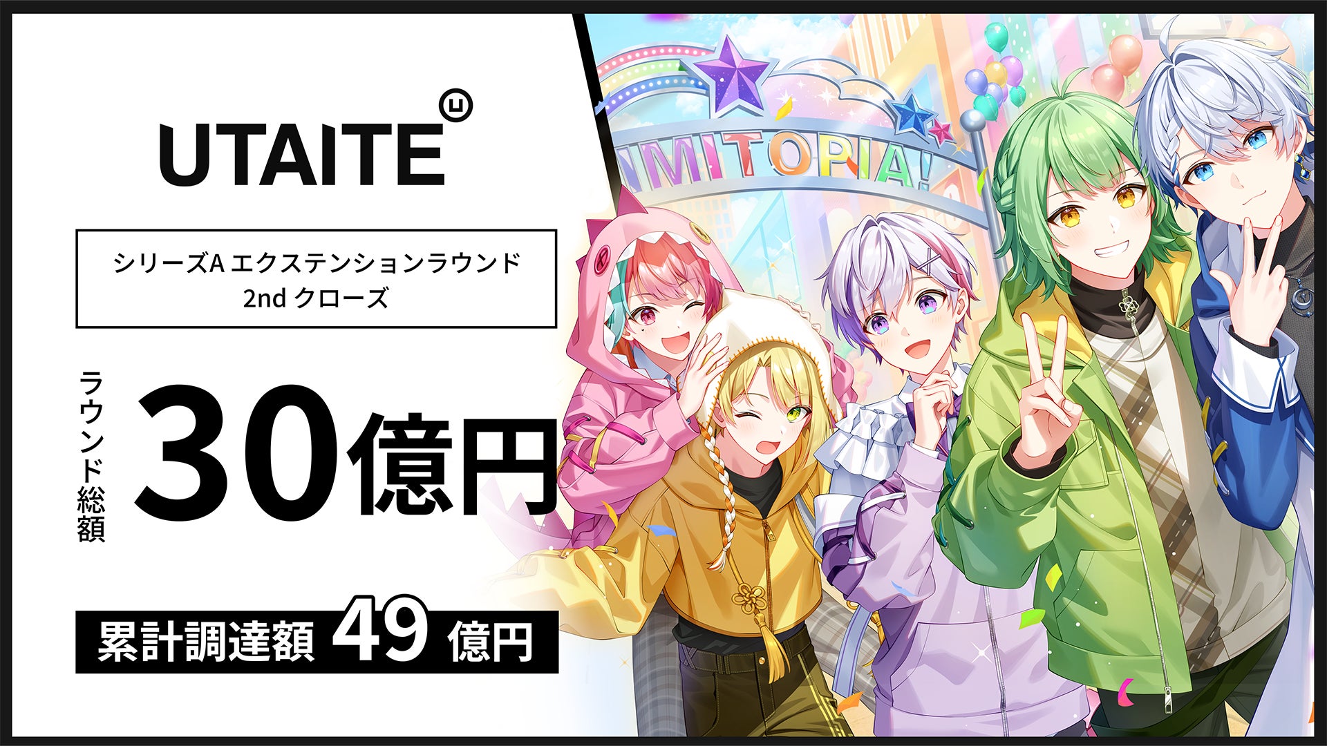 2.5次元IP開発、運営を行う株式会社ウタイテ(本社:東京都新宿区、代表取締役:倉田将志)は、第三者割当増資及び銀行借入により、シリーズAエクステンションラウンド総額30億円(累計調達額49億円)の資金調達を実施したことをお知らせいたします。