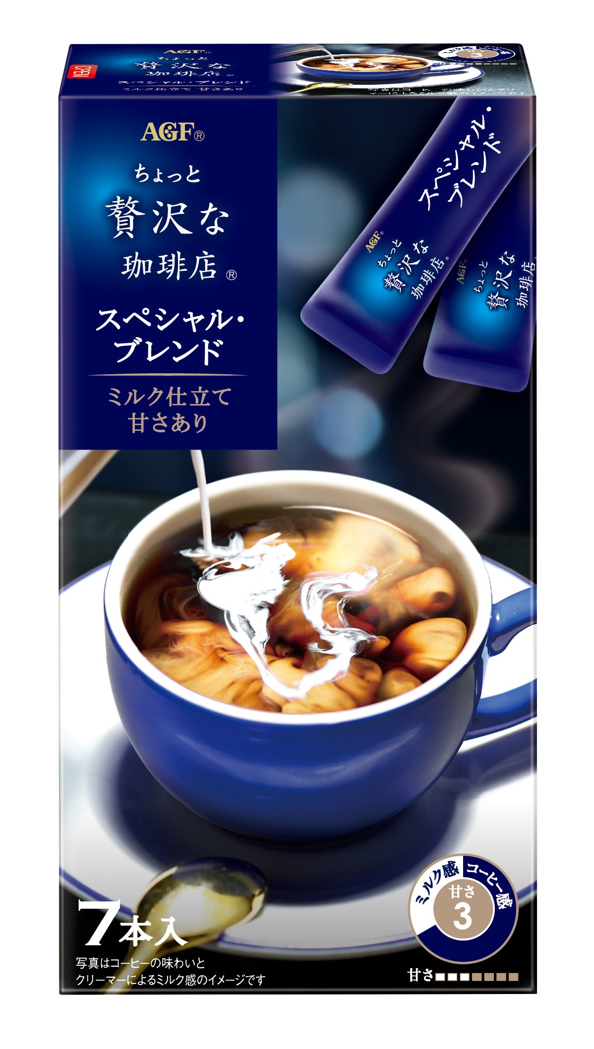 このたび新たに発売する《「ちょっと贅沢な珈琲店®」スティックコーヒー スペシャル・ブレンド》は、淹れたての“コーヒーの風味”や“香り”が引き立つ、程よい甘さとミルク仕立ての1杯を、スティック1本にお湯を注ぐだけで簡単に楽しめるスティックコーヒーです。