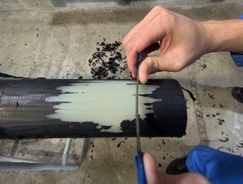 さらに、従来のケーブル外部半導電層処理では、削り作業で細かい削り屑が発生していましたが、『e-Cable™』は削り屑が生じません。そのため、工事現場での養生が不要になり、削り屑排出を抑えることで、環境管理の手間を軽減することができます。