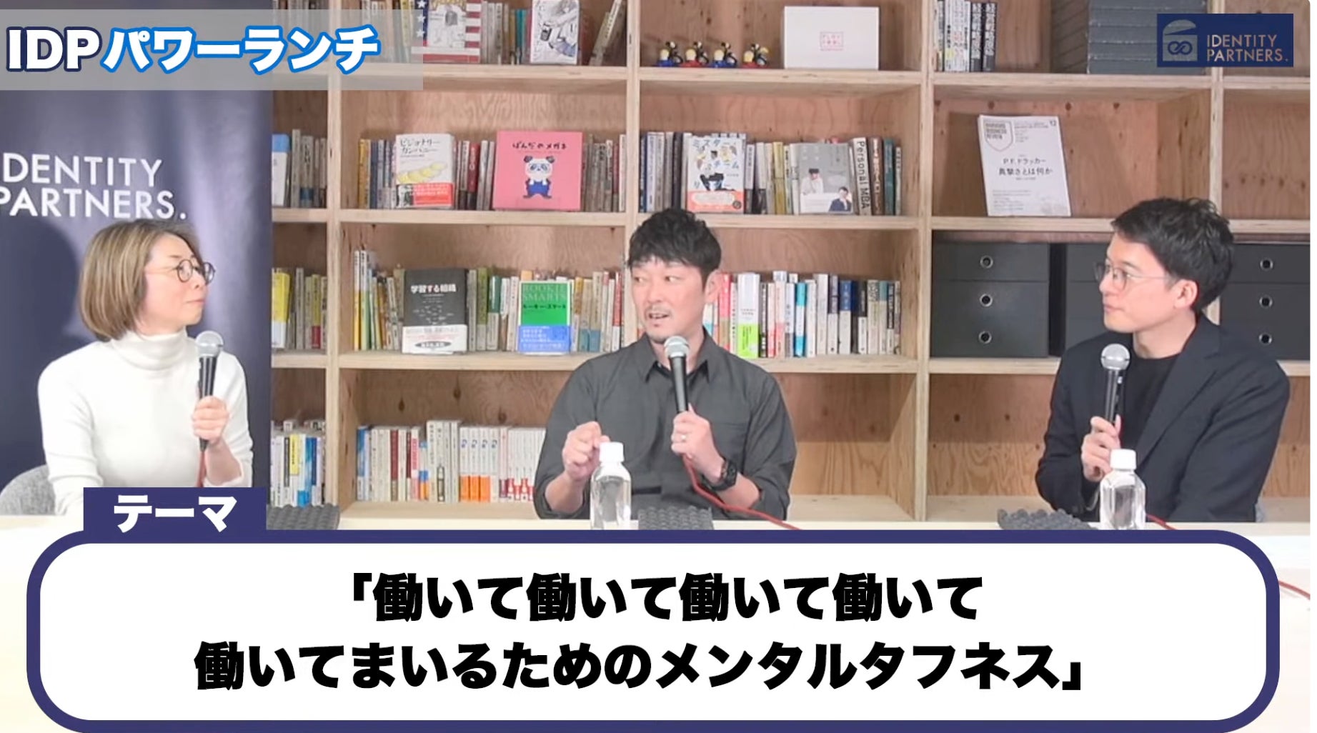 アイデンティティー・パートナーズ株式会社(本社:東京都渋谷区、代表取締役:中野広介)は、2026年1月15日(木)、IDPパワーランチ(オンライン勉強会)第1回「ライフワークバランスを捨てる日本 ~メンタルタフネスを考える~」を開催しました。
