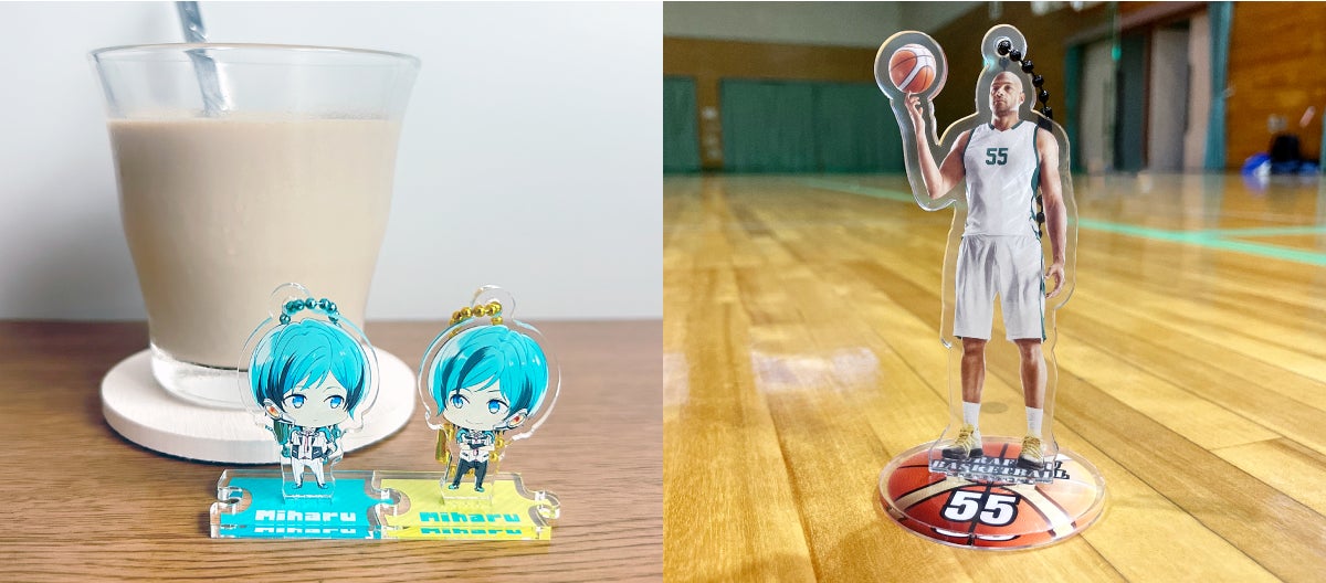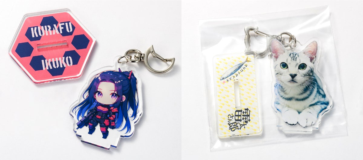 アクリル商品の中でも人気のアクリルキーホルダーとアクリルフィギュア、2つの商品特徴を融合させた新しい商品です。