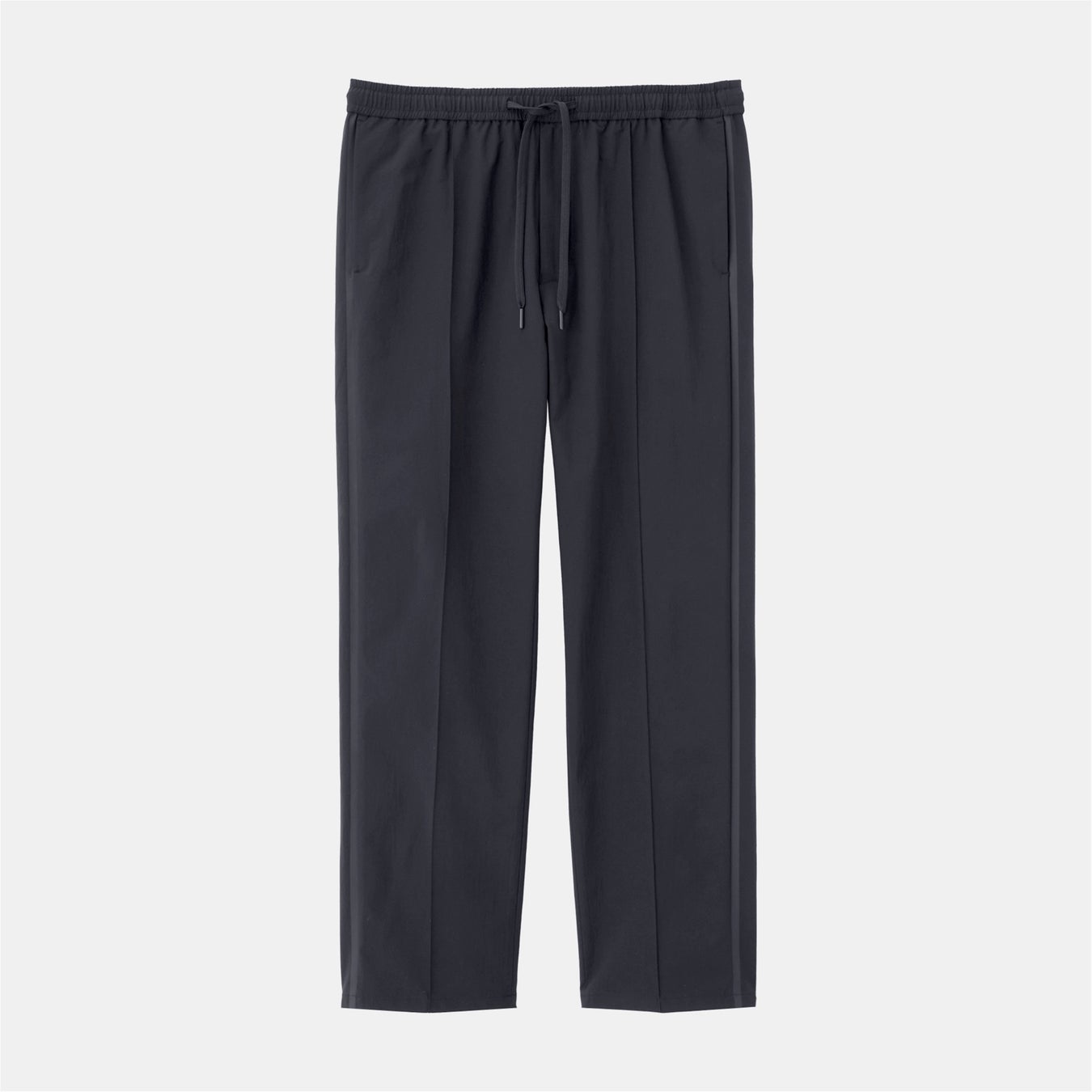 「テックストレッチトラックパンツ」はサイドラインの入ったスポーティさがありながら、きれいなレッグラインとピンタック入りのデザインが都会的な印象です。ウエストゴムと高いストレッチ性で動きやすく、アクティブに動くシーンにも最適です。