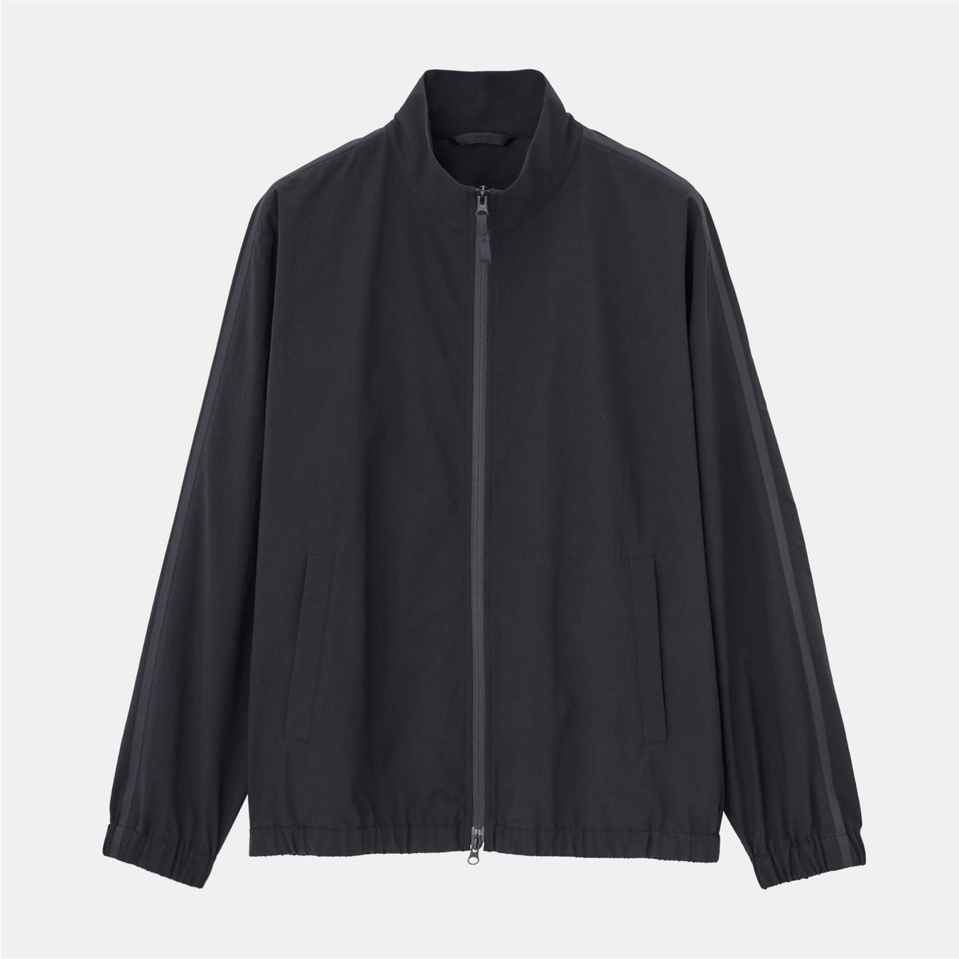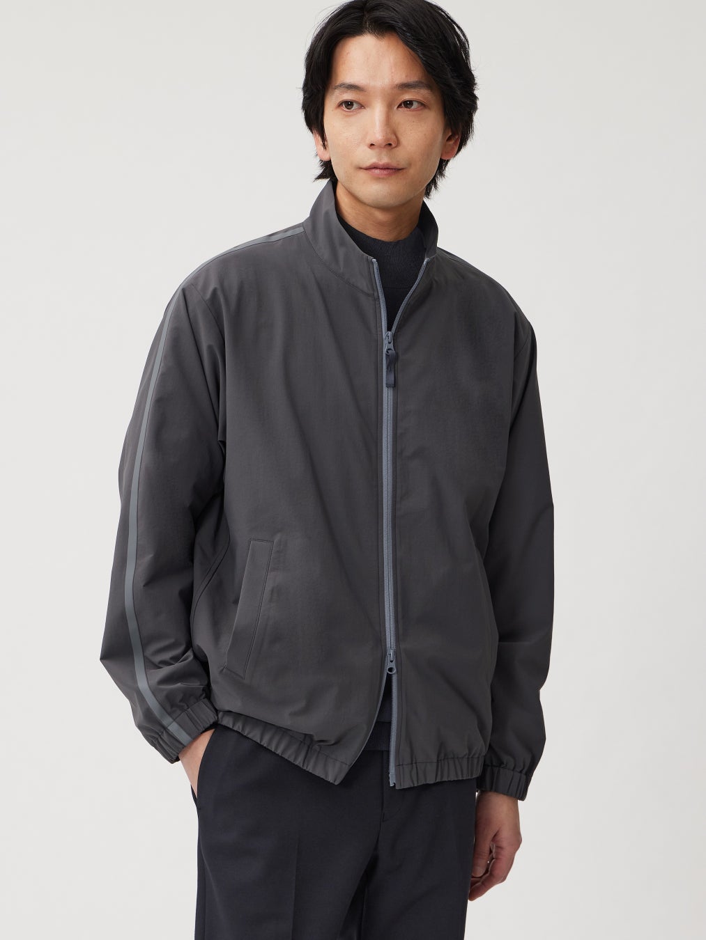 「テックストレッチトラックジャケット」はトレンドのトラックジャケットを、大人でも着やすい上品なデザインに落とし込んだアイテムです。袖に伸びるサイドラインがアクセントとなり、スポーティで旬な印象を演出します。
