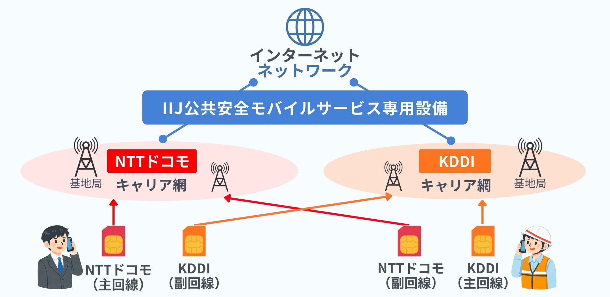 公共安全モバイルサービスは、株式会社インターネットイニシアティブ(以下、IIJ)が構築した公共安全モバイルサービス専用設備を用い、政府が推進する「公共安全モバイルシステム」に対応した通信サービスです。