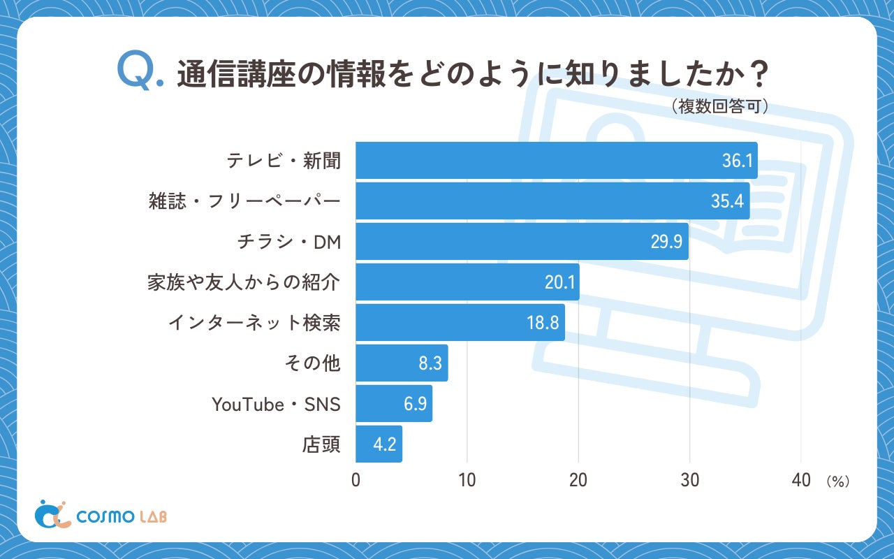 「テレビ・新聞」(36.1%)、「雑誌・フリーペーパー」(35.4%)、「チラシ・DM」(29.9%)、「家族や友人からの紹介」(20.1%)と続きます。デジタル全盛時代にあっても、従来型メディアが依然として主要な情報源となっている実態が明らかになりました。