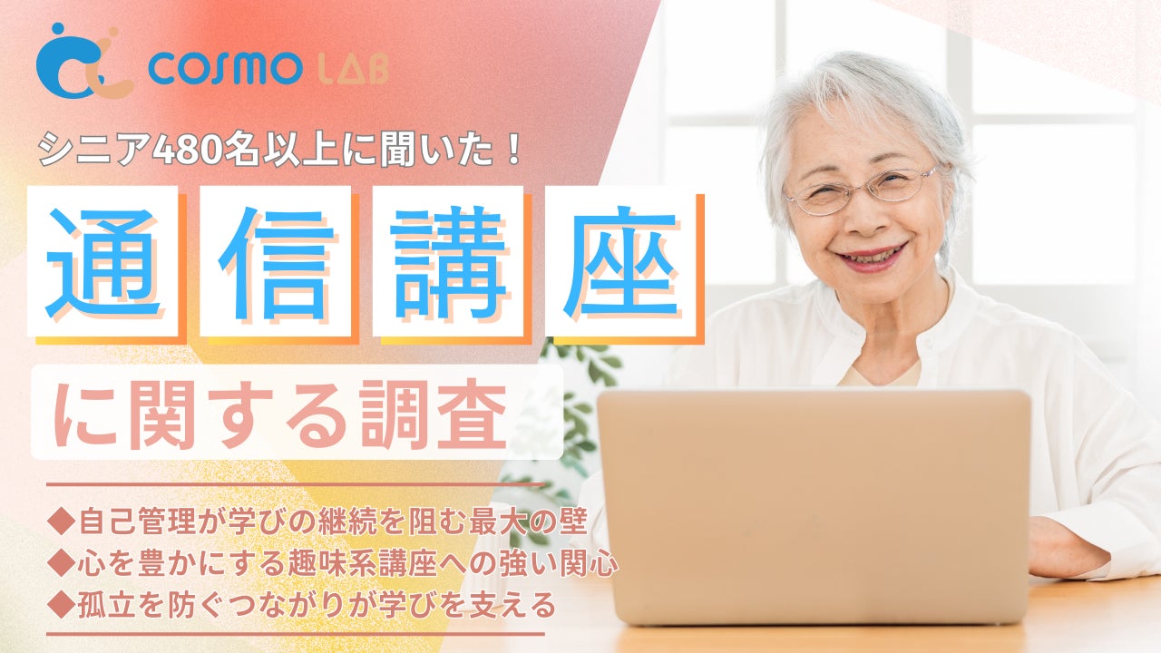 シニア専門のマーケティングプラットホーム コスモラボ(会社名:コスモヘルス株式会社、本社:東京都港区、代表取締役社長 小塚 崇史)がシニア層の『通信講座』に関するアンケートリサーチのレポートをリリースしました。本レポートでは、知識欲と行動の間に横たわる壁、人気の学習ジャンル、継続を支える環境づくりなど、シニア世代の学びの実情が明らかになりました。