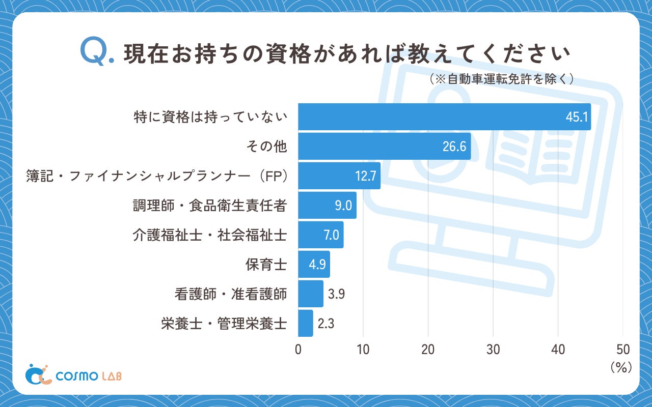 2:現在お持ちの資格があれば教えてください(※自動車運転免許を除く)