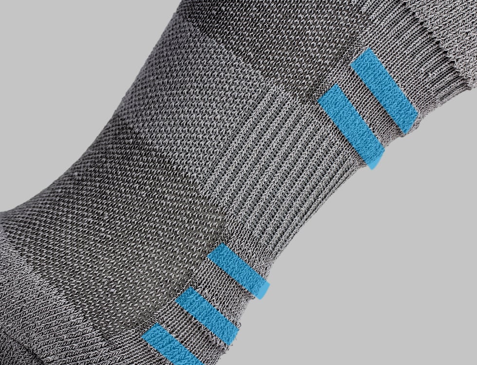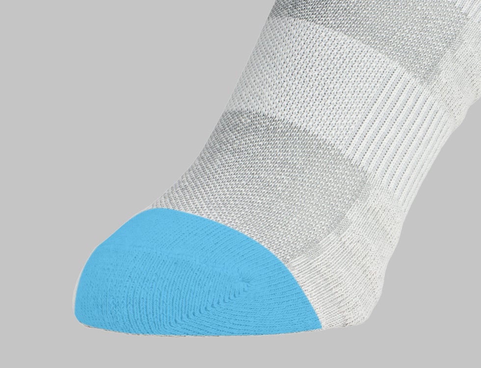 つま先・かかとにパイルクッションを配置し、運動時の衝撃を軽減します。