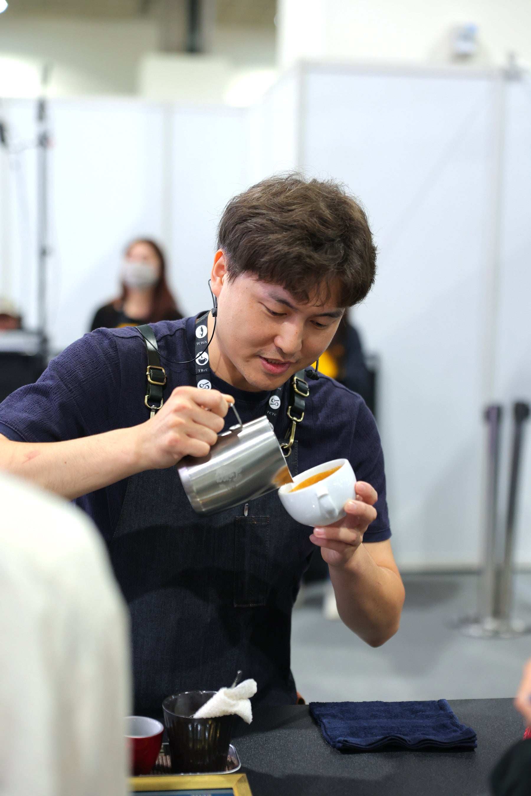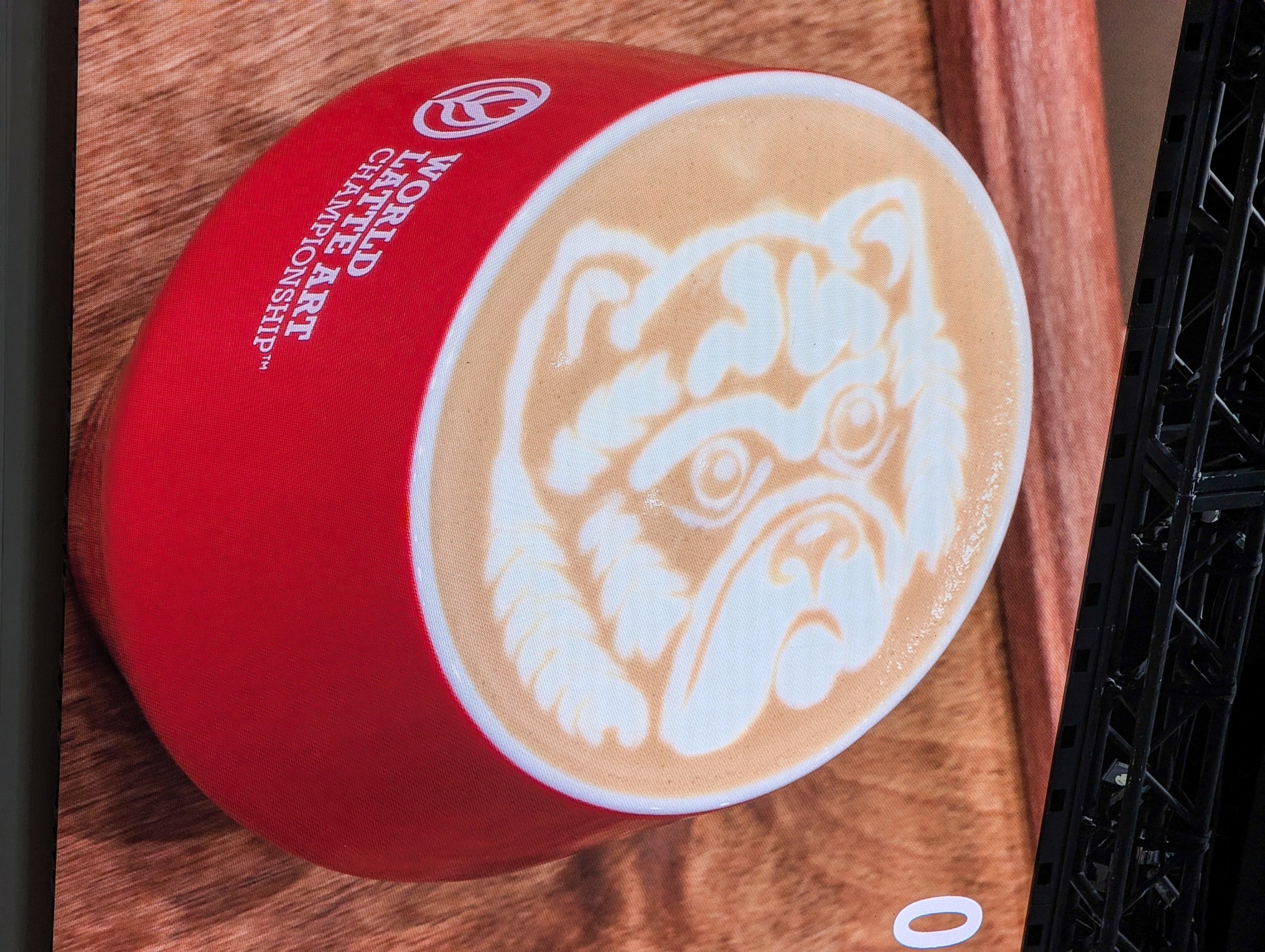 『WLAC』とは、世界最大のスペシャルティコーヒー協会であるSCA(Specialty Coffee Association)が主催する、世界的に権威のあるコーヒーの国際競技会の一つです。世界30以上の国から集まった33名の各国チャンピオンらが世界一の座を競いました。決勝では制限時間11分の中で2種類のフリーポアラテアートを各2杯、デザイナーラテアートを2杯提供し、表現されたデザインの芸術性・独創性・複雑さ・コントラストの鮮やかさ・2杯のラテアートの同一性・パフォーマンス内容などが審査されました。