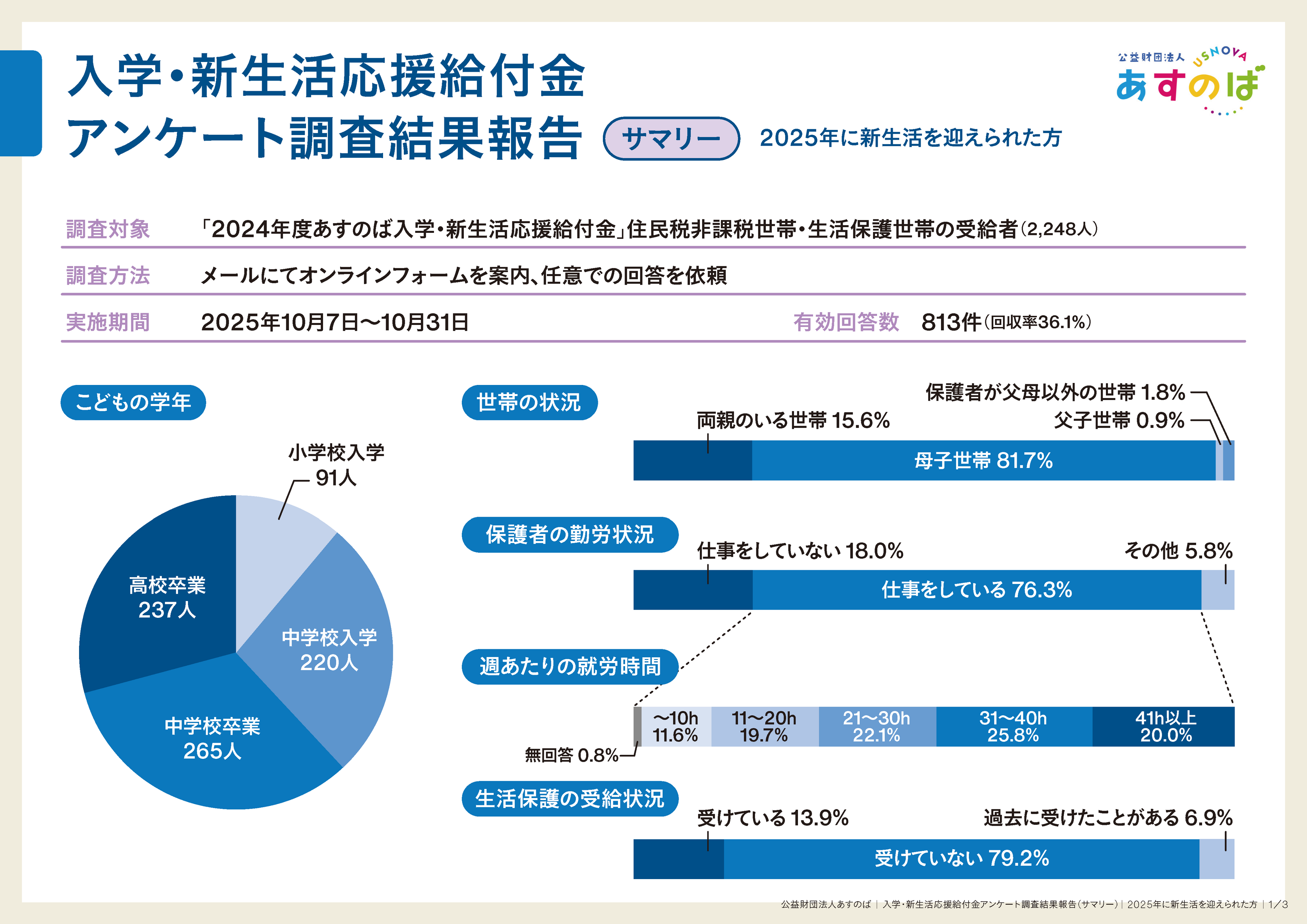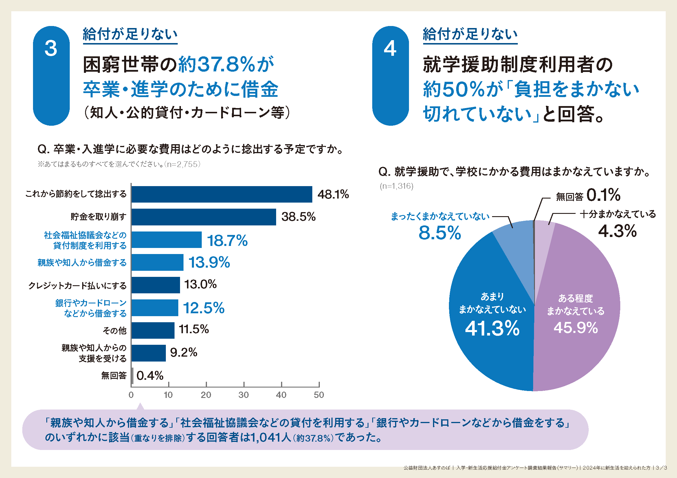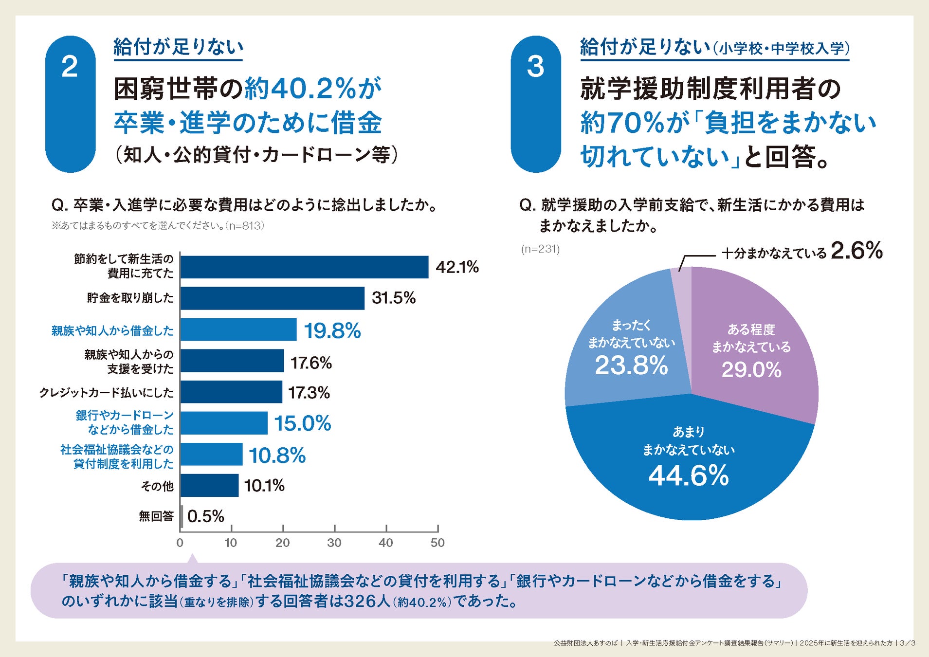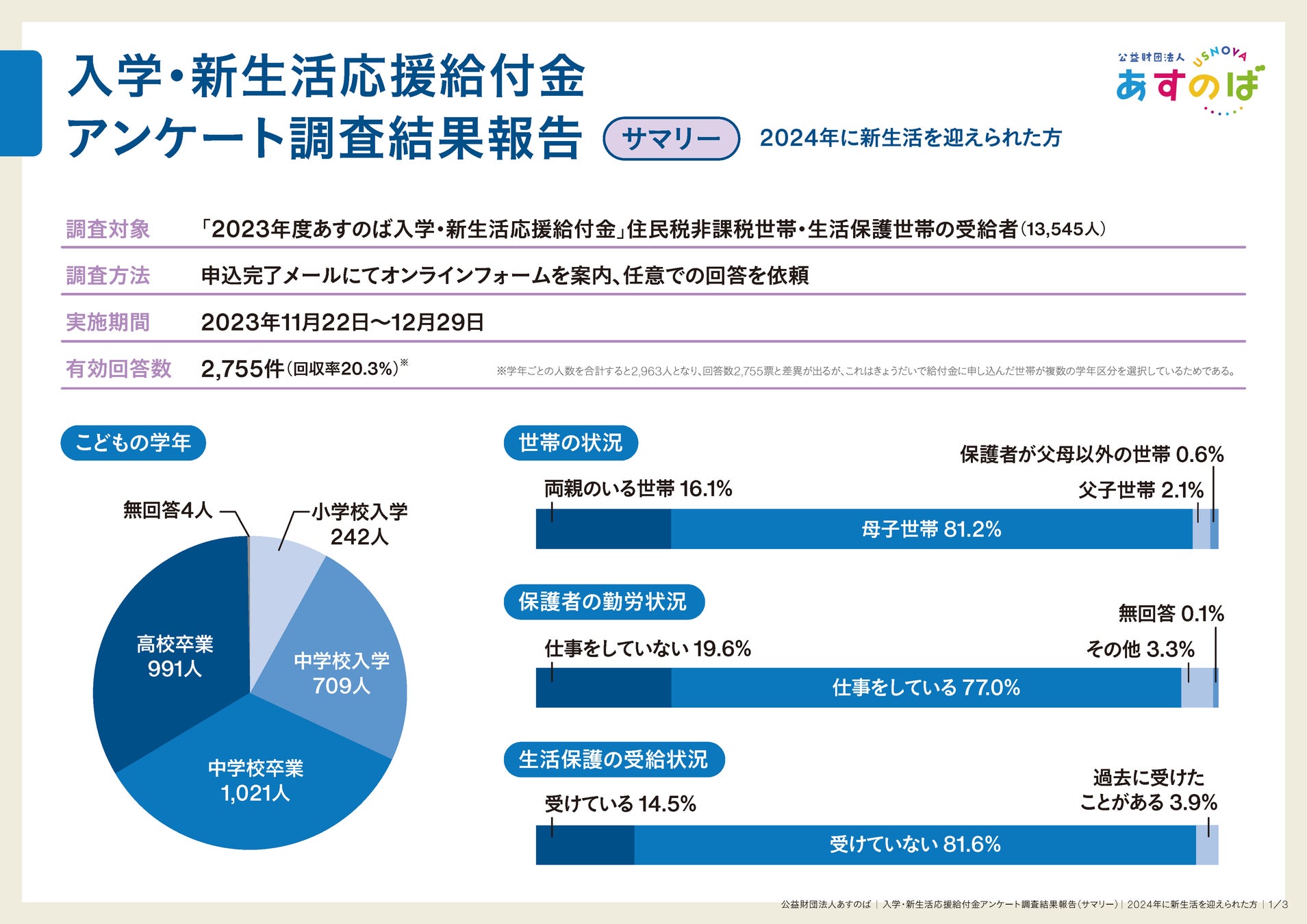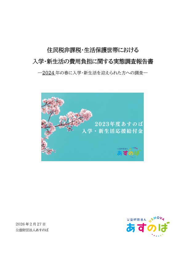 「2024年度あすのば入学・新生活応援給付金」住民税非課税世帯・生活保護世帯の受給者(2248人)にアンケートの回答を依頼した。