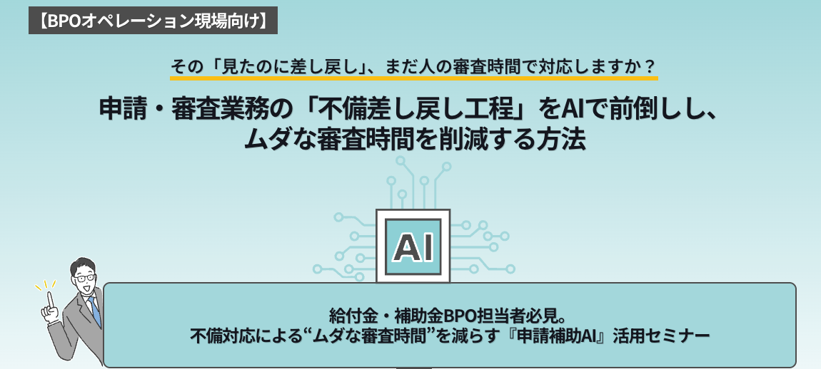 【3月19日開催】給付金/補助金事業の審査時間を削減する「申請補助AI」活用セミナー