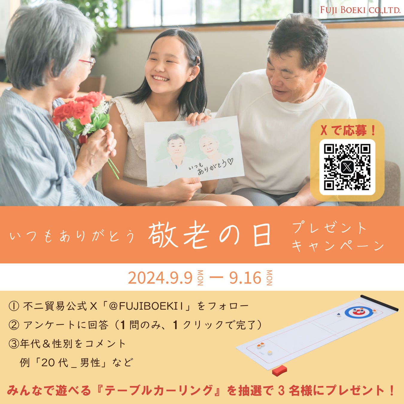 Xで敬老の日を記念したキャンペーンを実施中!抽選で3名様に「テーブルカーリング」をプレゼント